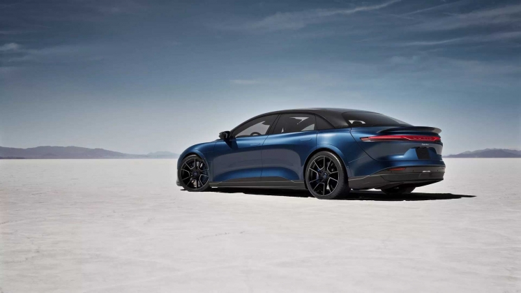 O Lucid Air Sapphire possui um sistema de transmissão de três motores (dois no eixo traseiro e um à frente) capaz de debitar mais de 1.200 cv.