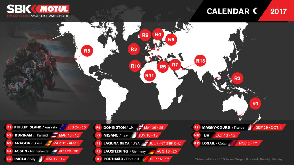 A Dorna revelou esta sexta feira o calendário do Mundial de Superbike para 2017, onde tal como se previa, Portugal…