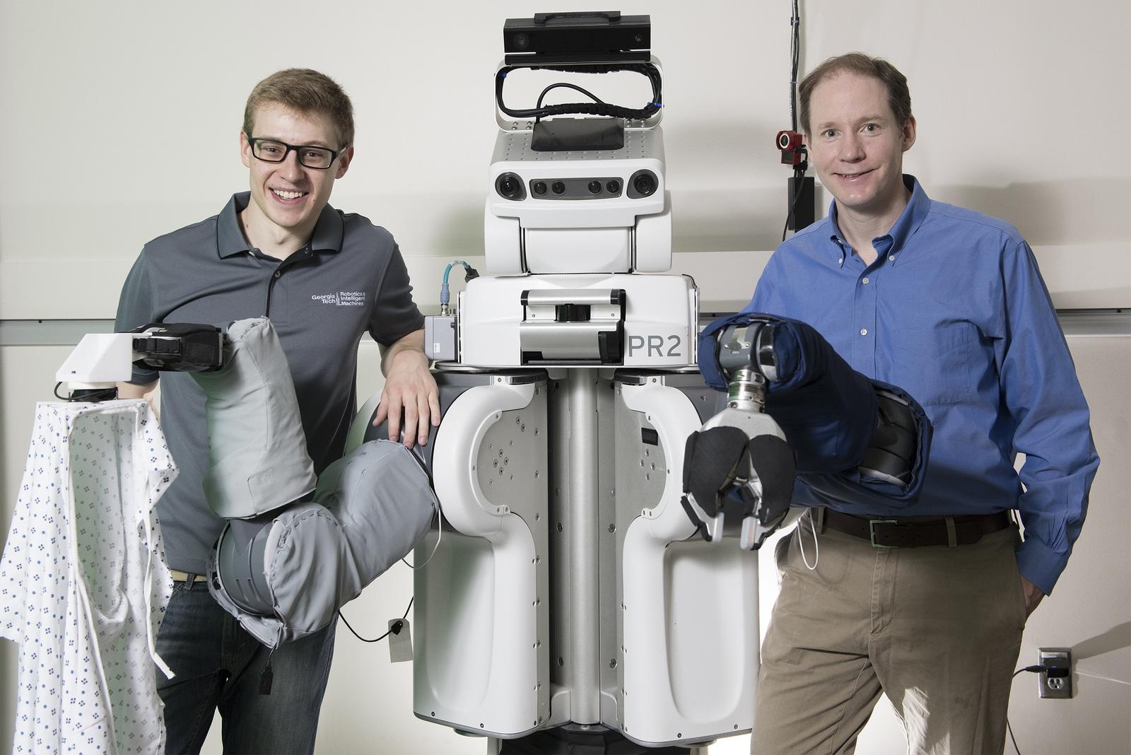 O robô, chamado PR2, estudou mais de 11 mil simulações de computador para colocar uma manga de uma bata de hospital no braço de uma pessoa, não necessitando de olhar para o braço nem para a roupa. Embora a máquina esteja equipada com câmaras que funcionam como olhos, o seu sistema de inteligência artificial analisou a força necessária para fazer a manga da vestimenta passar pelo cotovelo e pelo ombro.