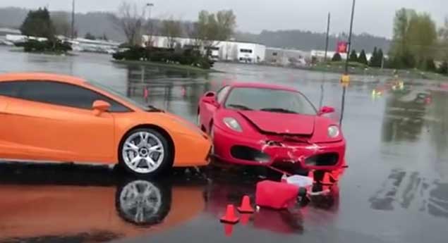 Um potente Ferrari, descuidos e condições meteorológicas adversas só podiam dar no que deu, um despiste. Mas os contornos ainda se tornam mais graves (e dispendiosos) quando o condutor escolhe embater num Lamborghini. Claro que…