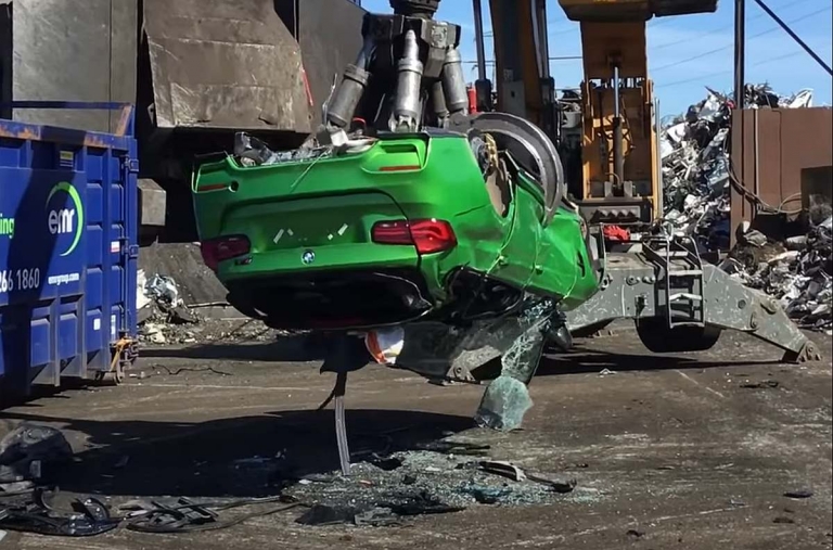 O crime não compensa: Polícia britânica destrói BMW M3 feito de peças roubadas