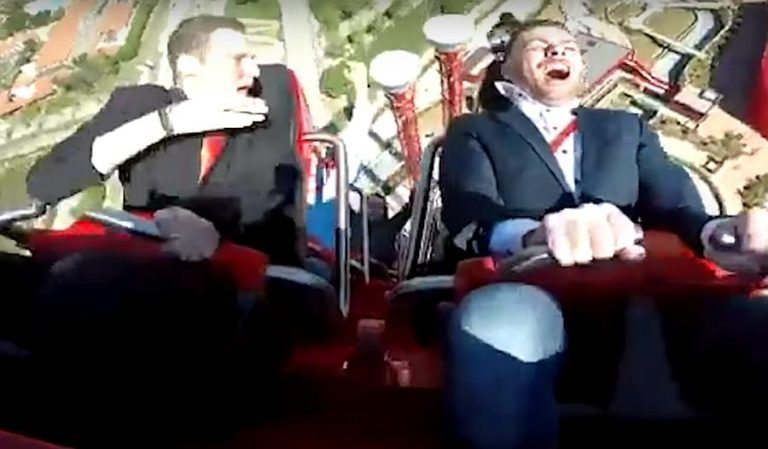 O momento de diversão de um dos passageiros no dia de inauguração da montanha russa do mais recente parque de diversões da Ferrari, em Espanha, esteve quase a ser estragado por um pombo, que não conseguiu evitar a grande velocidade…