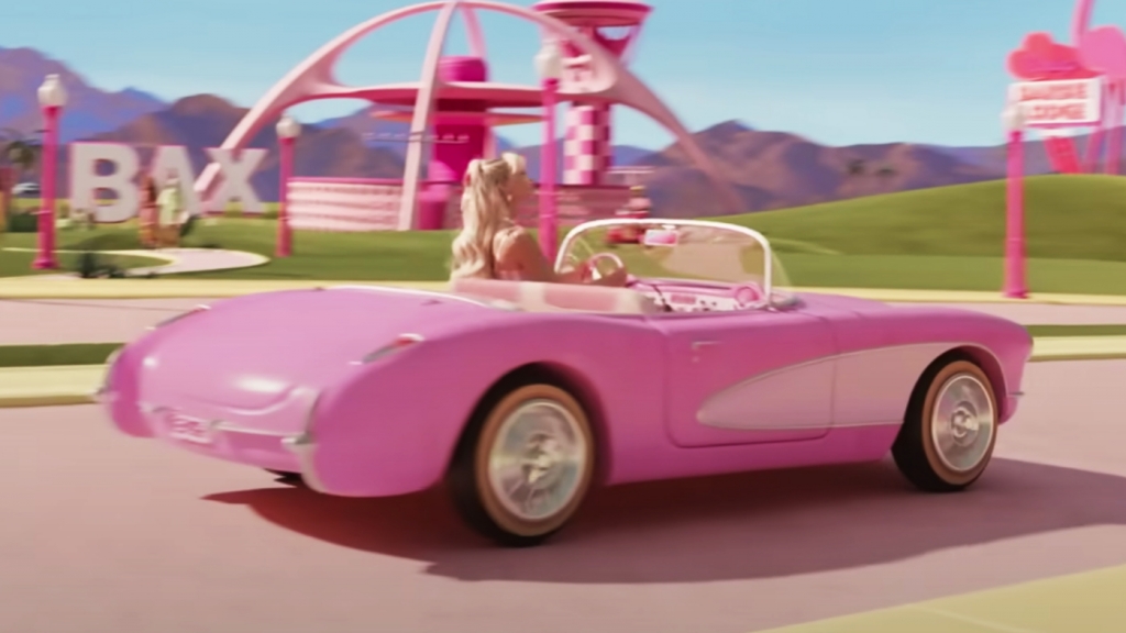 A reposta é que não será fácil… O carro descapotável do filme, cor-de-rosa, pois claro, é uma versão única criada para o cinema, inspirada no mítico Chevrolet Corvette C1, a primeira do modelo lançado no mercado norte-americano em 1953 e que esteve em produção até 1962, dando início a um dos maiores fenómenos de longevidade da indústria automóvel – está atualmente na 8.ª geração.