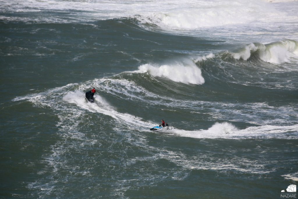 A diferença? Aqui, na Praia do Norte, é a água que cai em mim e não eu na água. E o balanço, sempre necessário, é o do próprio jet ski que continua a avançar até ao ponto certo, ao ponto onde nascem as ondas. O resto é igual. Até o tamanho delas. Mas apenas porque está um lindo dia de sol e as ondas são baixinhas. Para Hugo Vau e McNamara é como um dia calmo no escritório. Com o pormenor de que eles escolheram um com vista para a felicidade. Mesmo quando parecem desafiar a morte, em cada descida de uma onda da dimensão de um prédio, há algo de invulgar no sorriso deles. Como se soubessem algo que nós desconhecemos. Como se tivessem descoberto algum mistério que um jornalista de meia idade nem desconfia.