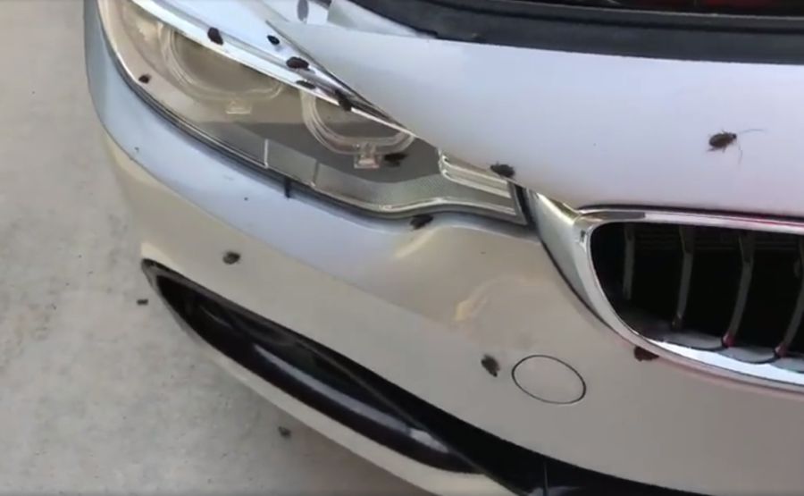 Howell publicou o vídeo do seu carro no Facebook, retratando a visão com que teve de se deparar depois de conduzir até casa, tendo depois tratado de tentar matar todos os animais com recurso a inseticida.