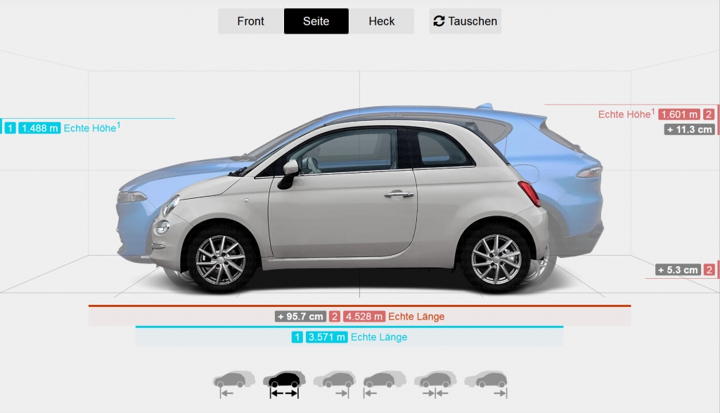 Há uma nova ferramenta para comparar os tamanhos dos carros