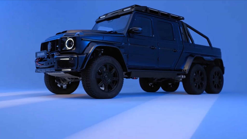 A edição “Deep Blue” é um espetáculo visual, com acabamento num azul metálico profundo personalizado que exala sofisticação e potência. A postura imponente do veículo é acentuada pela sua configuração de seis rodas, chassis alargado e pneus todo-o-terreno de grandes dimensões. A Brabus também incorporou uma série de melhoramentos aerodinâmicos, tais como uma grelha personalizada, elementos em fibra de carbono e detalhes de iluminação LED, conferindo-lhe um comportamento futurista e agressivo. O kit widebody amplifica ainda mais a sua presença imponente, enquanto o interior reflecte o tema do exterior com materiais premium e detalhes artesanais.