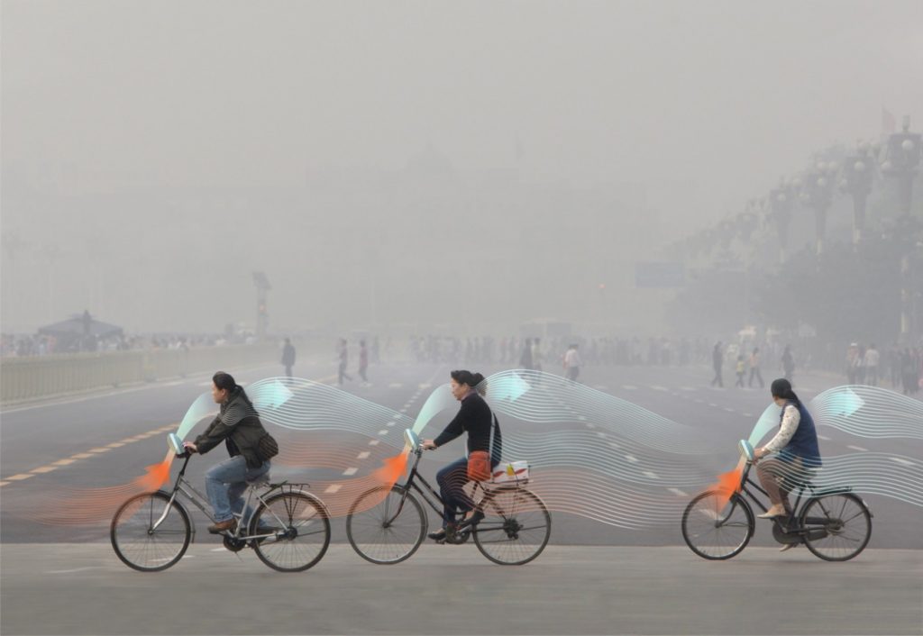 Antes do aumento desmesurado de carros na rede urbana, a China era conhecida como “o país das bicicletas”. A ideia é que a população volte a usar bicicletas, mas agora equipadas com tecnologia que vão permitir a estes veículos limpar o ar à volta do seu utilizador, acabando com a poluição numa localização pequena. Agora, imagine milhões de pessoas a fazer o mesmo com uma bicicleta, e uma grande área pode ser limpa.
